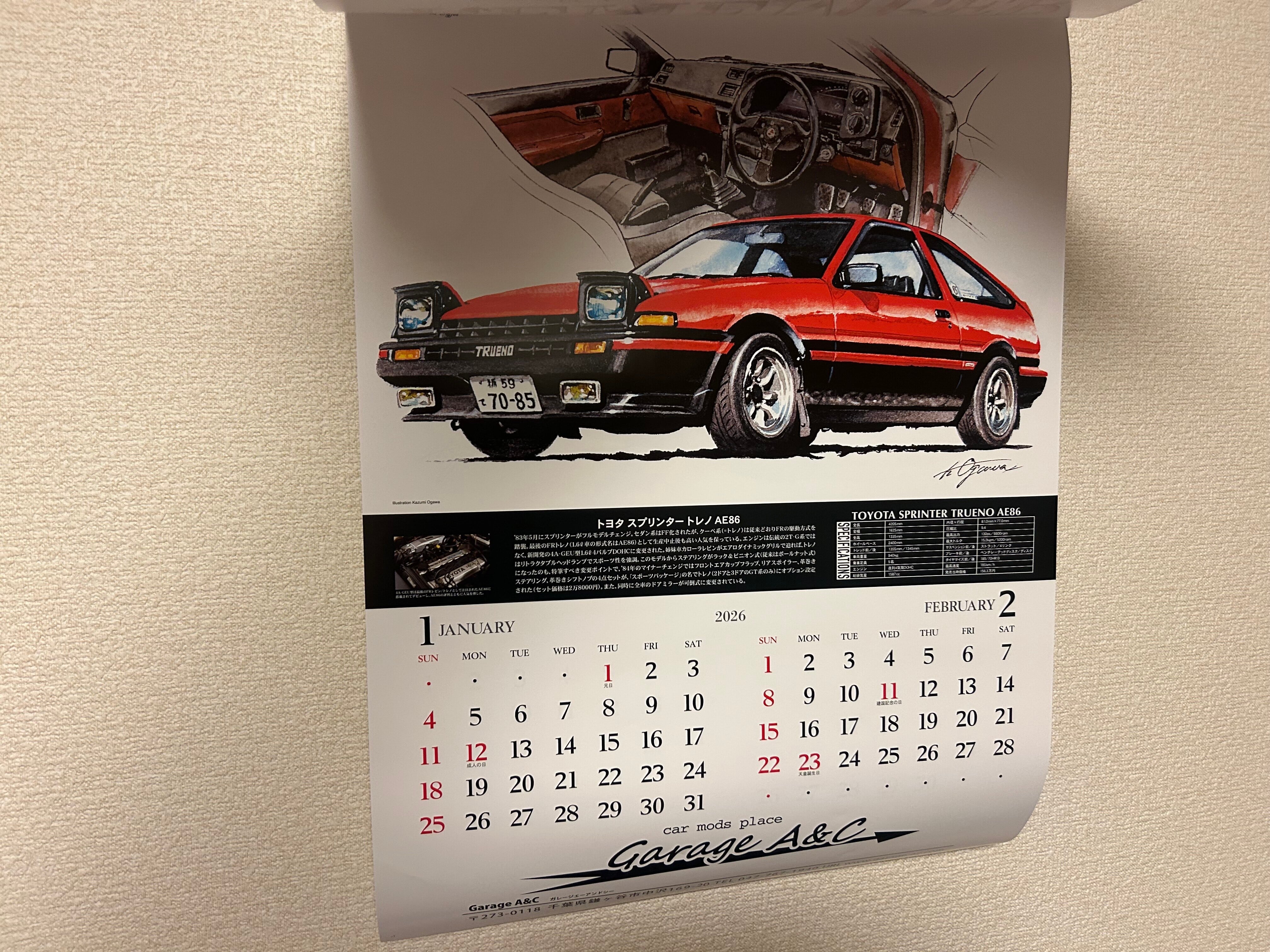 GarageA&C2026年カレンダーです。毎年皆さん楽しみにして下さっています(#^.^#) 当店で入庫して下さっているお客様には差し上げております( *´艸`)