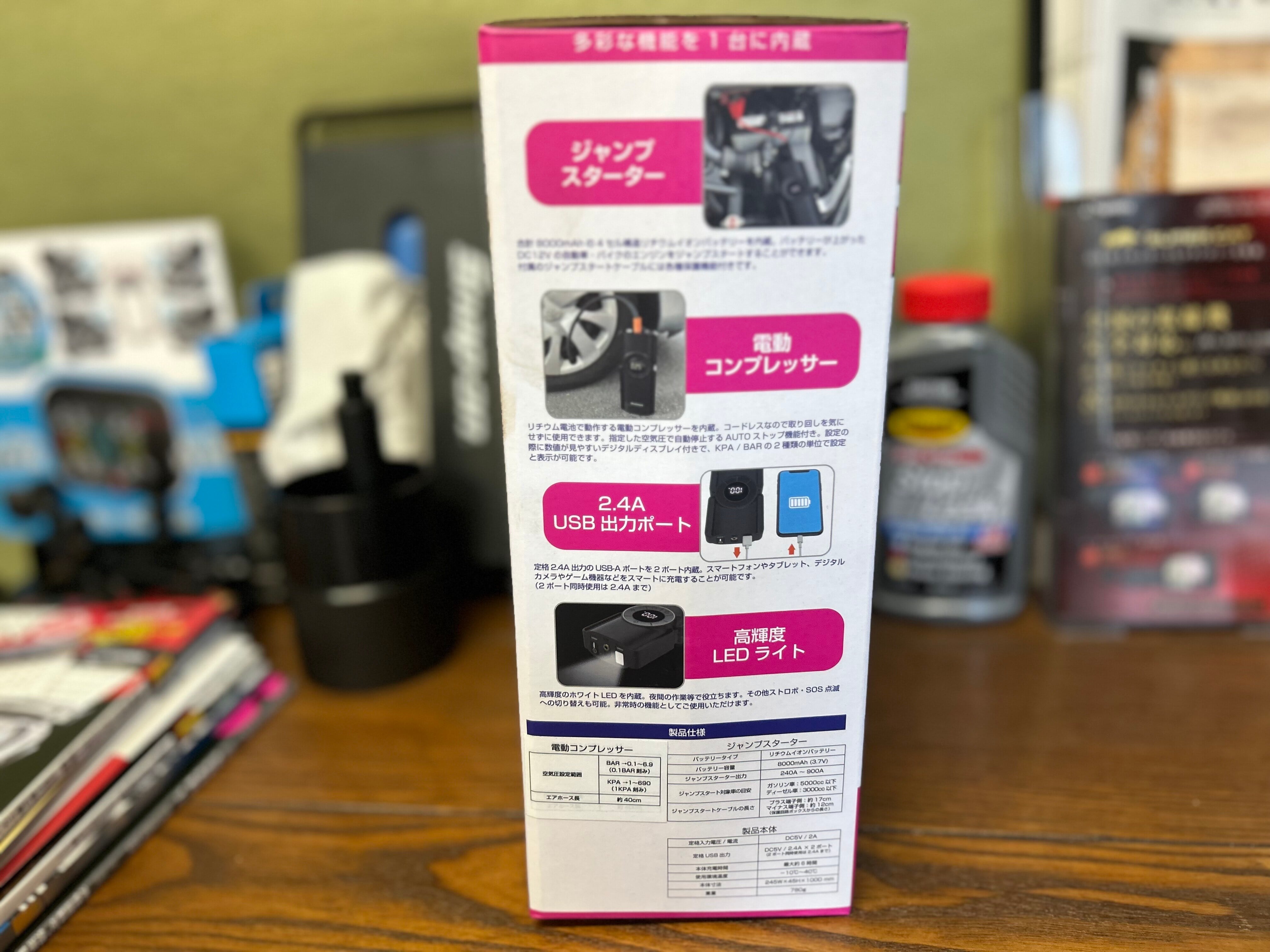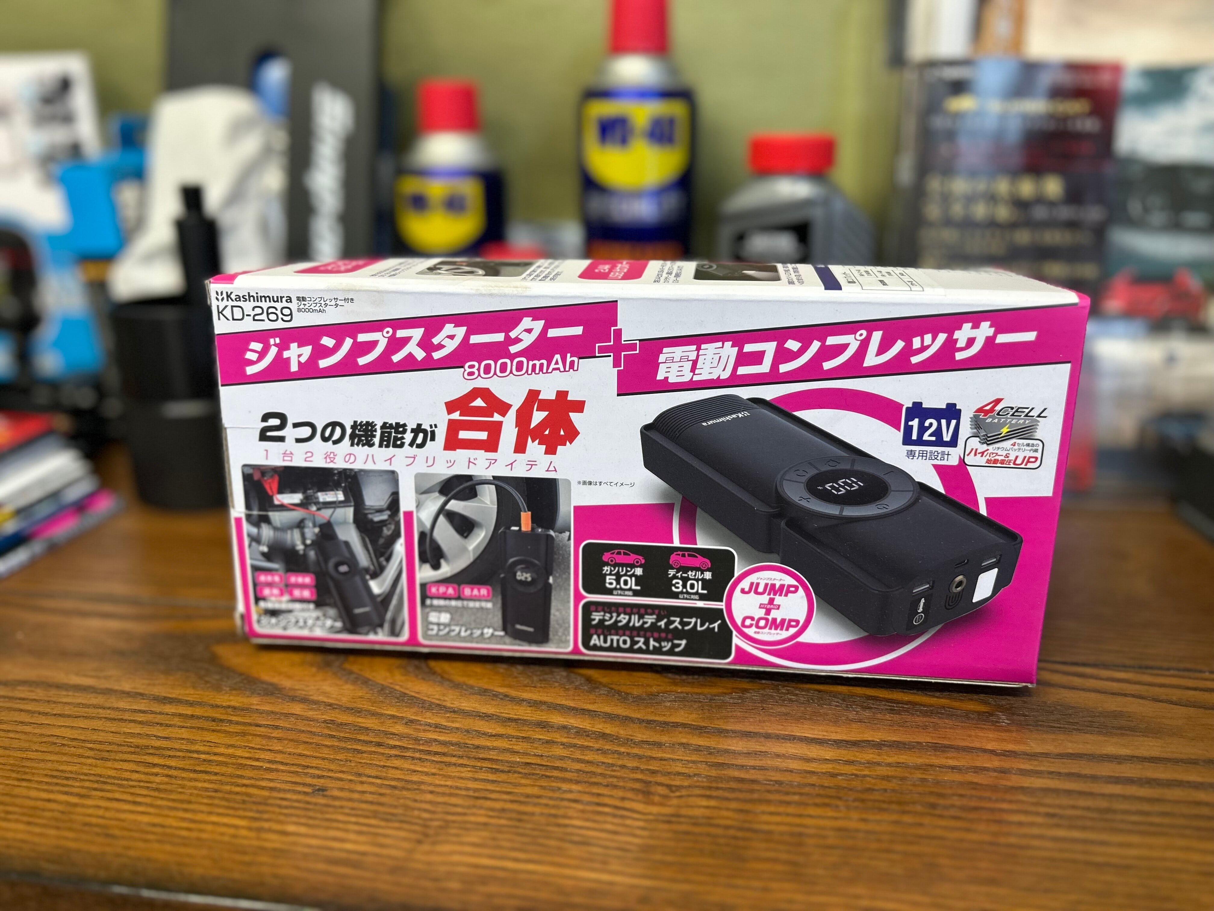 カシムラさんの1台2役、電動コンプレッサー付きジャンプスターターです!